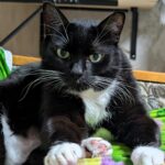 isane täiskasvanud must-valge lühikarvalineJorh on oma parimates aastates ülisõbralik kassipoiss, kelle kerge ümar vorm annab ainult lisavõlu.