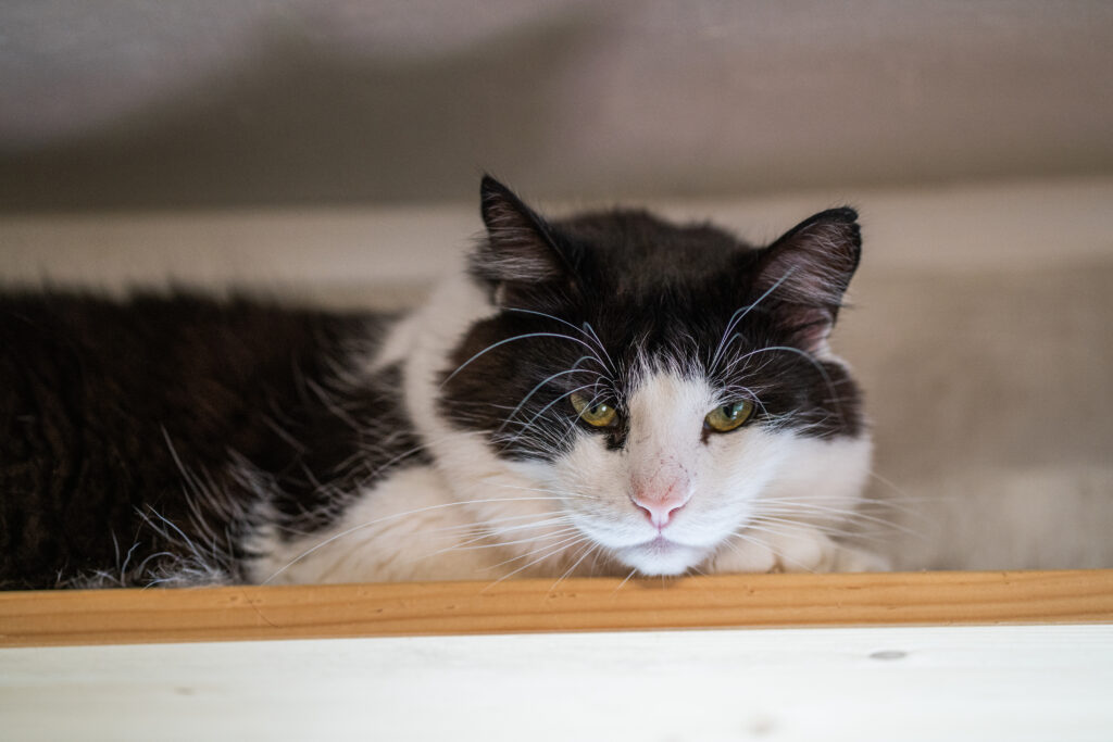 isane täiskasvanud must-valge pikakarvalinePelle saabus meile Jõhvi tänavatelt. Pellel oli kunagi kodu ja armastav perenaine, kuid kahjuks tema inimene suri. Pärast perenaise surma ei olnud teda enam kellelegi vaja ja ta visati tänavale. Võime ainult ette kujutada, mis toimus Pellekese hinges, kui ta jäi ühtäkki ilma oma kallist inimesest ja soojast kodust.