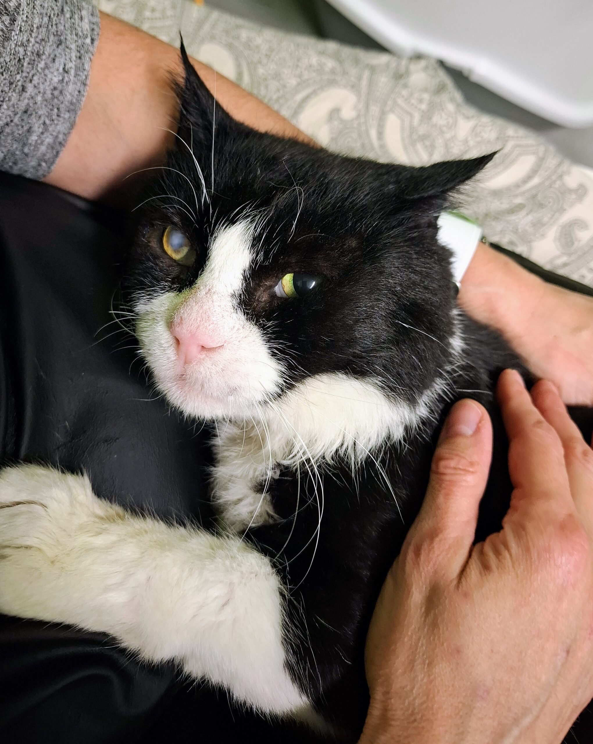 isane täiskasvanud must-valge lühikarvalinePrints rahulik ja leplik hing, kelle elulugu pole just lihtsate killast. Ta on päästetud Rummu kassikolooniast.