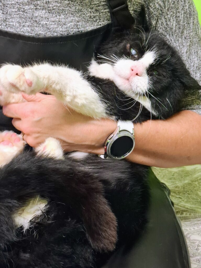 isane täiskasvanud must-valge lühikarvalinePrints rahulik ja leplik hing, kelle elulugu pole just lihtsate killast. Ta on päästetud Rummu kassikolooniast.